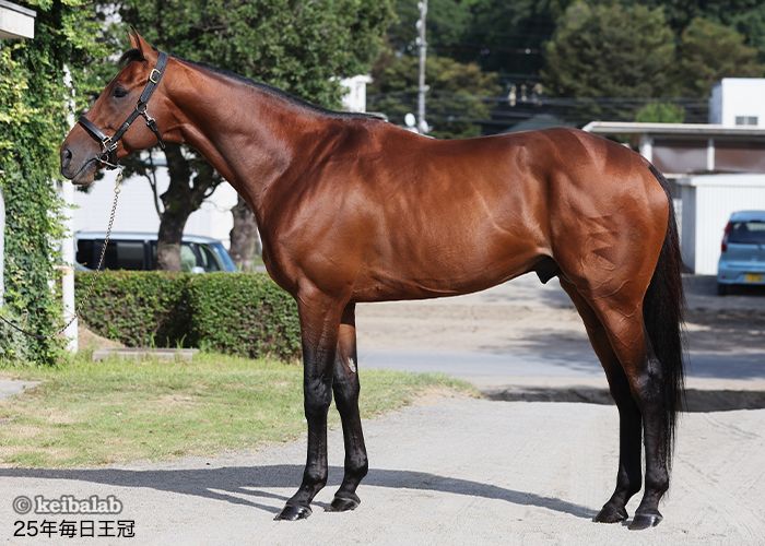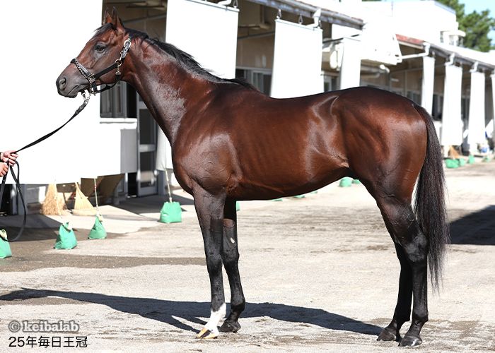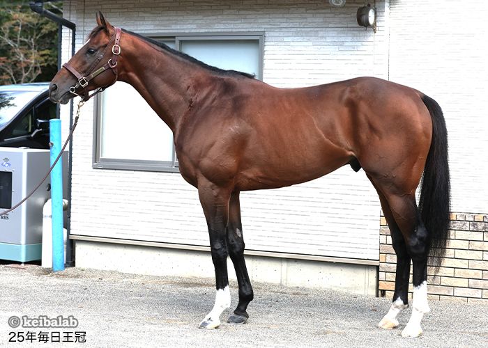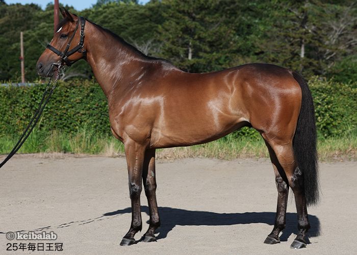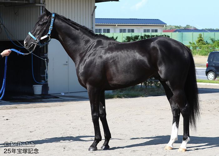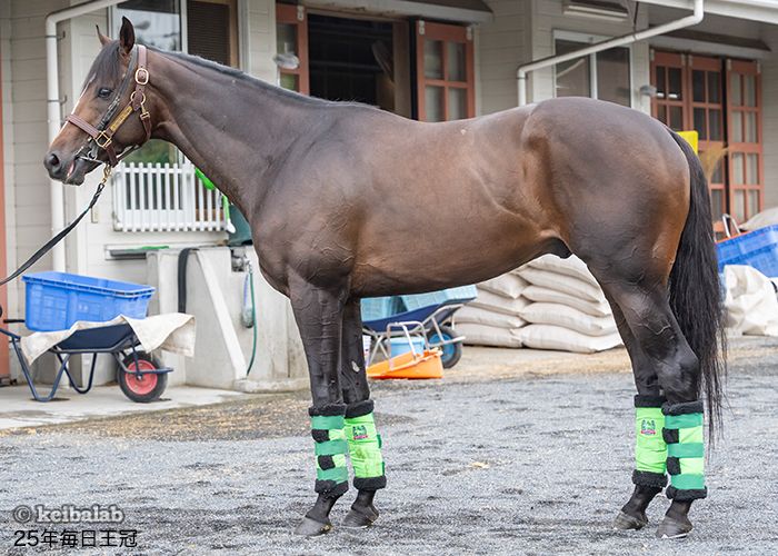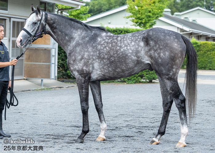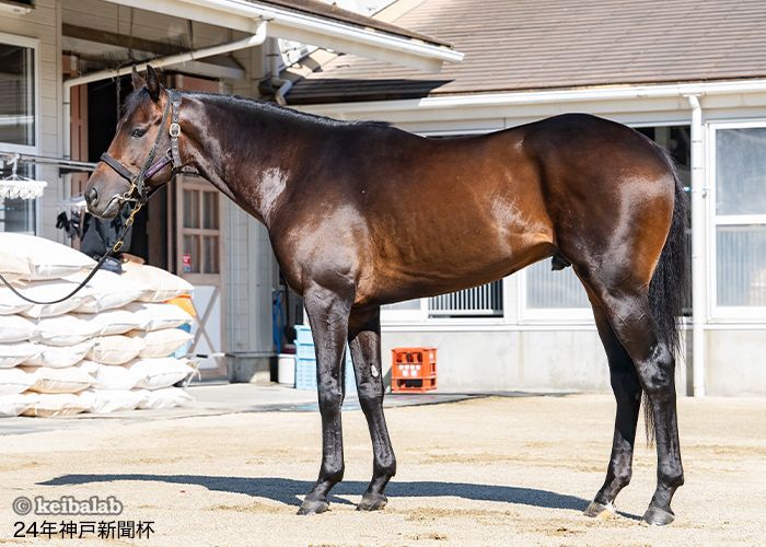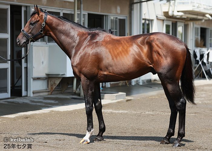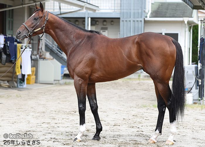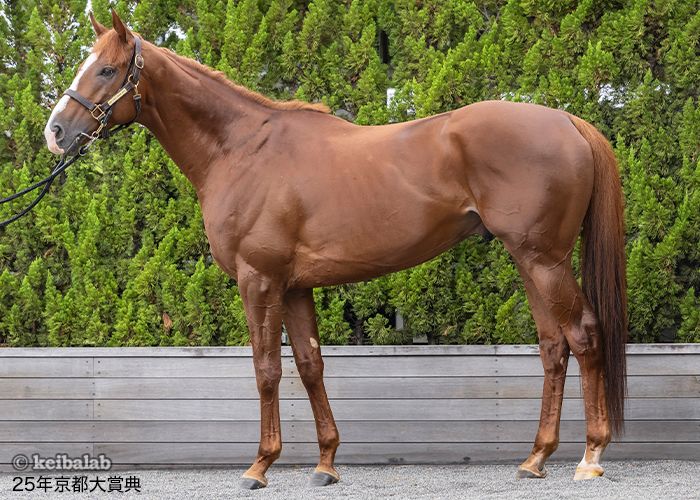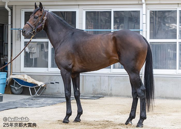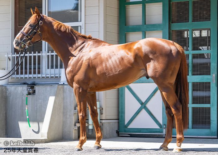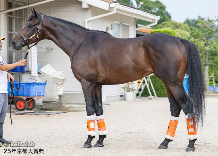 後躯の仙骨は傾斜した「斜尻」そして飛節は真っ直ぐに伸びた「直飛」の構造で、良質な瞬発力と持続力を兼ね備えたタイプ。後肢が長く、ややトモ高に映るバランスは、同じキズナ産駒のジャスティンミラノと近いモノがある。トモの容量は大きく、良質なスピードを秘めていて、距離短縮は好材料。春よりもキ甲が伸びて完成度が高まってきた。ダービー以来の出走でも太め感なく引き締まり、動ける態勢に整っている。