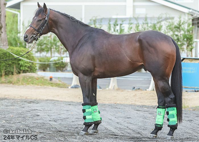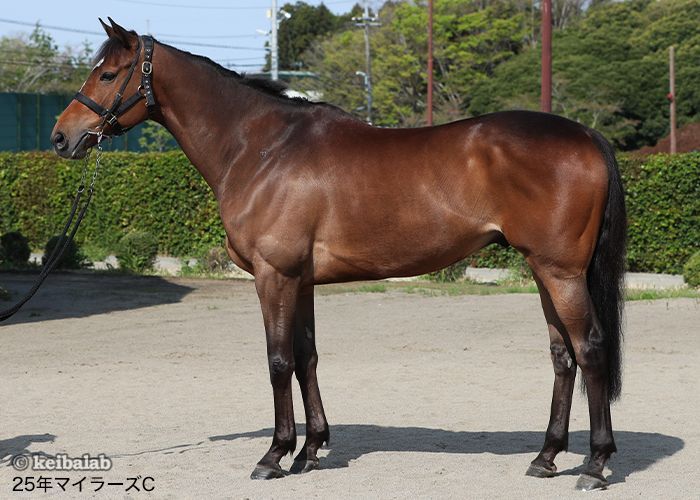 父リアルスティールよりも全体にスッキリしている。胴に伸びがあって跳びは大きく、本質的には綺麗な馬場でこそ全能力を発揮するタイプ。前肢に長さがあって、マイラーのシルエットではないため、1800mへの距離延長は好材料か。ストライドの大きさから東京コースも得意。太め感なく整っているが、重賞連勝を決めた昨秋と比較すると、やや筋肉の張り・毛艶に良化の余地を残している印象。