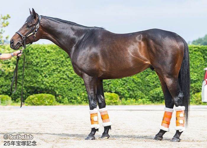 胴長で、筋肉の付き方はなだらか。比較的柔軟性を秘めていて、関節の可動域は広い。前駆に対してトモはやや薄く、ゆえに行き脚は付きづらい。その分、持続力に富んだ息の長い末脚を繰り出すことができる。筋肉量を考慮すると、時計は掛かったほうが力を発揮できそうなイメージ。7歳馬でも立ち姿はパワフルで若々しく、毛艶の良さが示すように体調面は充実。当日の馬場がどうかも、状態面に関しては問題なし。