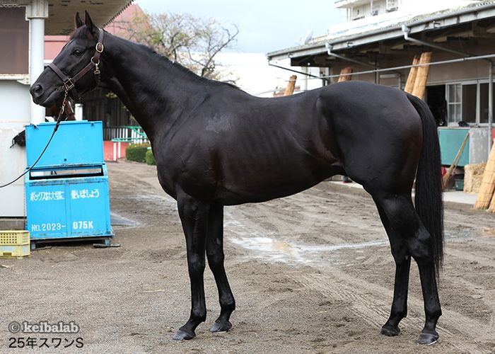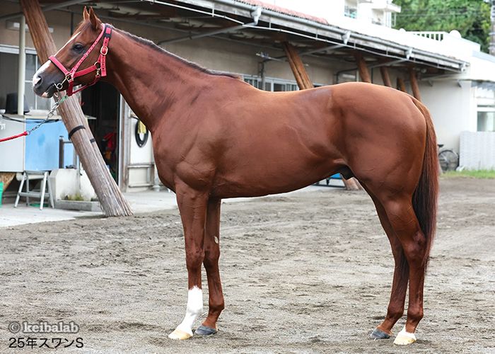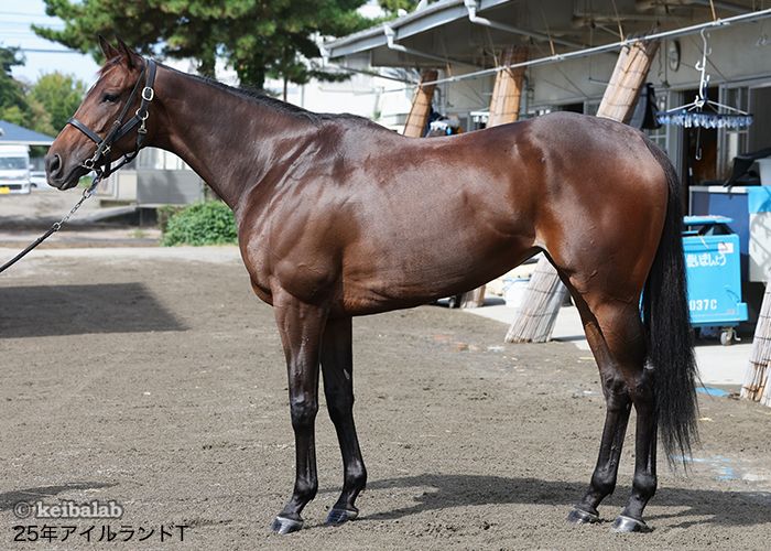 父シルバーステート譲りで筋肉量が豊富。トモの横幅が広く、良質なスピードとパワーを秘めている。ガッシリとした胴詰まりの体型で、短距離志向が強い。高速決着は好材料も1800mへの延長で脚の使いどころはポイント。ムダ肉の付きづらいタイプということもあるが、今回も腹周りはスッキリ引き締まっている。比較的大柄な体格でも緩さは感じさせず、筋肉はパンと張っていて見栄えがする。今回もいい状態で出走できそう。