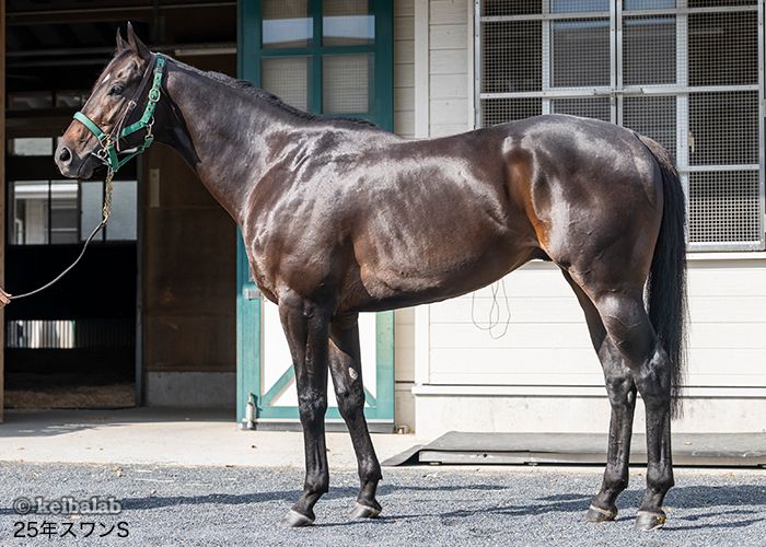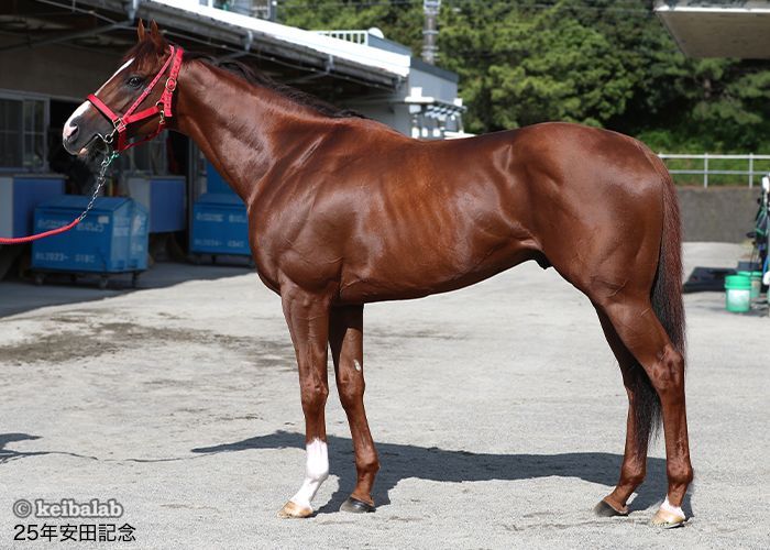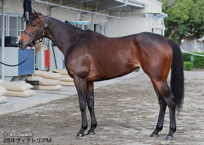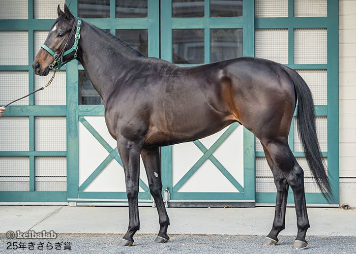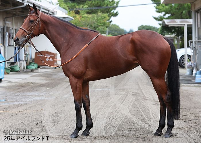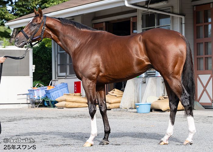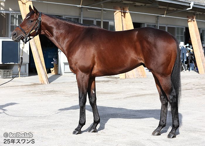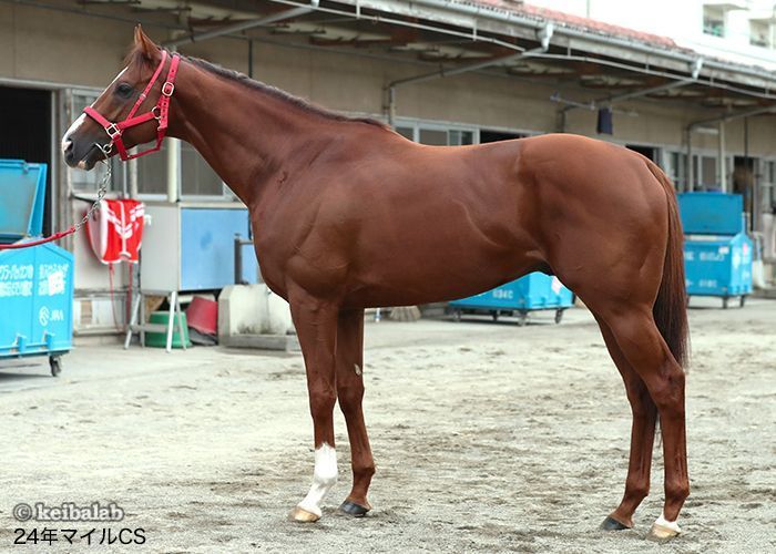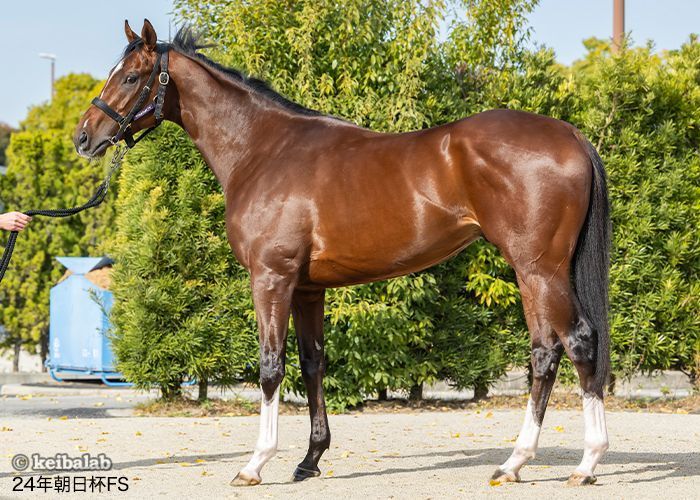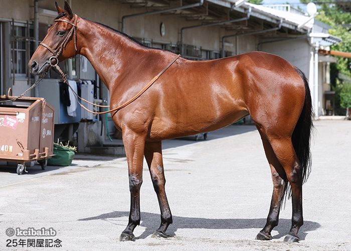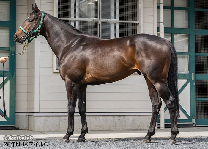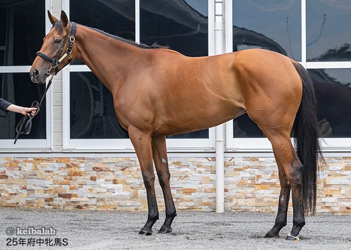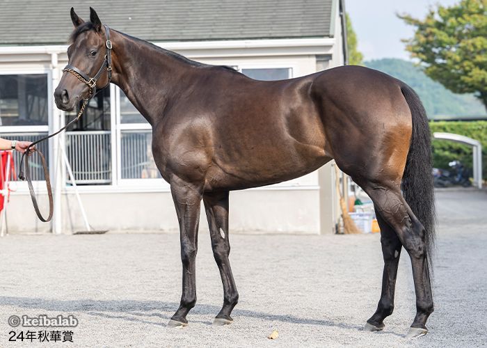 長躯短背でバランスのいい骨格。四肢をスラっと長く見せ、クビさしも比較的シャープ。付くべきところにしっかりと筋肉が付いているため、華奢には映らないが、本質的には中距離向きのフォルムに映る。1600mから1ハロンの距離延長は好材料。曲飛でピッチが速く立ち回りが上手なタイプ。反応の良さを活かせれば。休み明けでも腹周りはスッキリと見せて太め感なし。毛艶も良好で、力を出せるいい状態に仕上がっている。