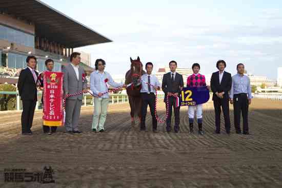 9月23日(祝・金)、船橋競馬場で行われた交流重賞・第58回 日本テレビ盃(JpnII)(3歳上、別定(重賞競走)指定、1着賞金:4,000万円)は、武豊騎手の圧倒的1番人気・スマートファルコンが次元の力をみせつけるように圧勝。着差こそ4馬身差だったが、昨秋から続いている連勝を6に伸ばした。勝ちタイムは1:50.6(重)。2着には三浦皇成騎手騎乗の3番人気・フリソ(牡5、美浦・小島茂厩舎)、3着には地元のカキツバタロイヤル(牡5、船橋・凾館一厩舎)がそれぞれ入っている。人気が予想された地方最強馬のフリオーソは競走除外。